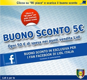 Sulla pagina Facebook di Lidl Italia potete scaricare un buono sconto del valore di 5 euro ogni 50 Euro di ...